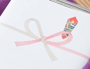 - 結婚祝いの熨斗は紅白結び切の水引ののし紙に、御結婚祝または寿と表書きし、下に出し人の名前を記入します。