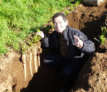 ひげのマスターも大塚人参掘りのお手伝いに。
