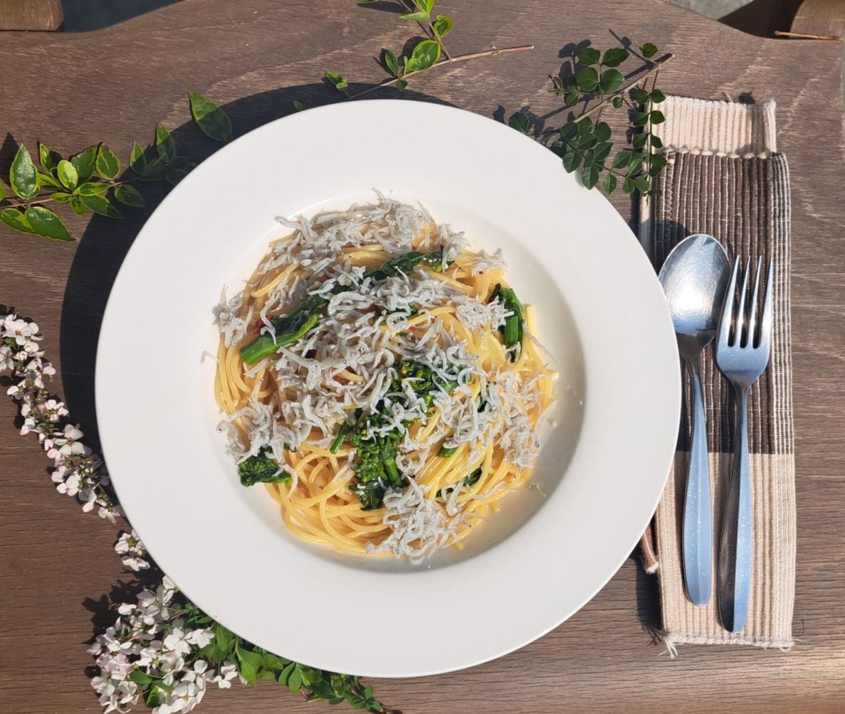 旬の野菜とたっぷりしらすのペペロンチーノ